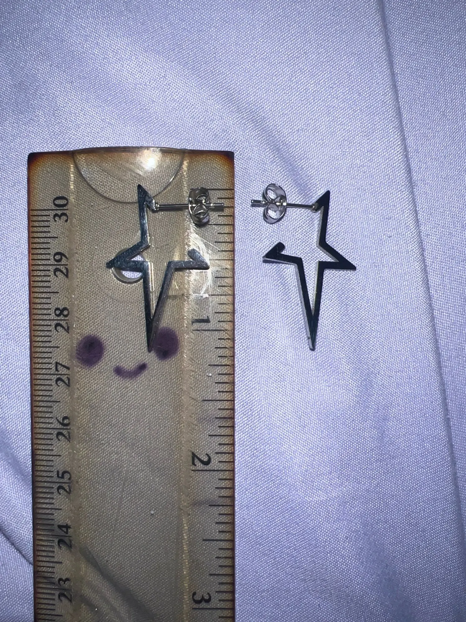 Really cute feels nice and proper like any other metal, but it’s not as “big” as it in its pictures, my hands are quite known for being small so the size of the earrings isn’t something to have high expectations about, i enjoy the earrings though only giving others a heads up.
